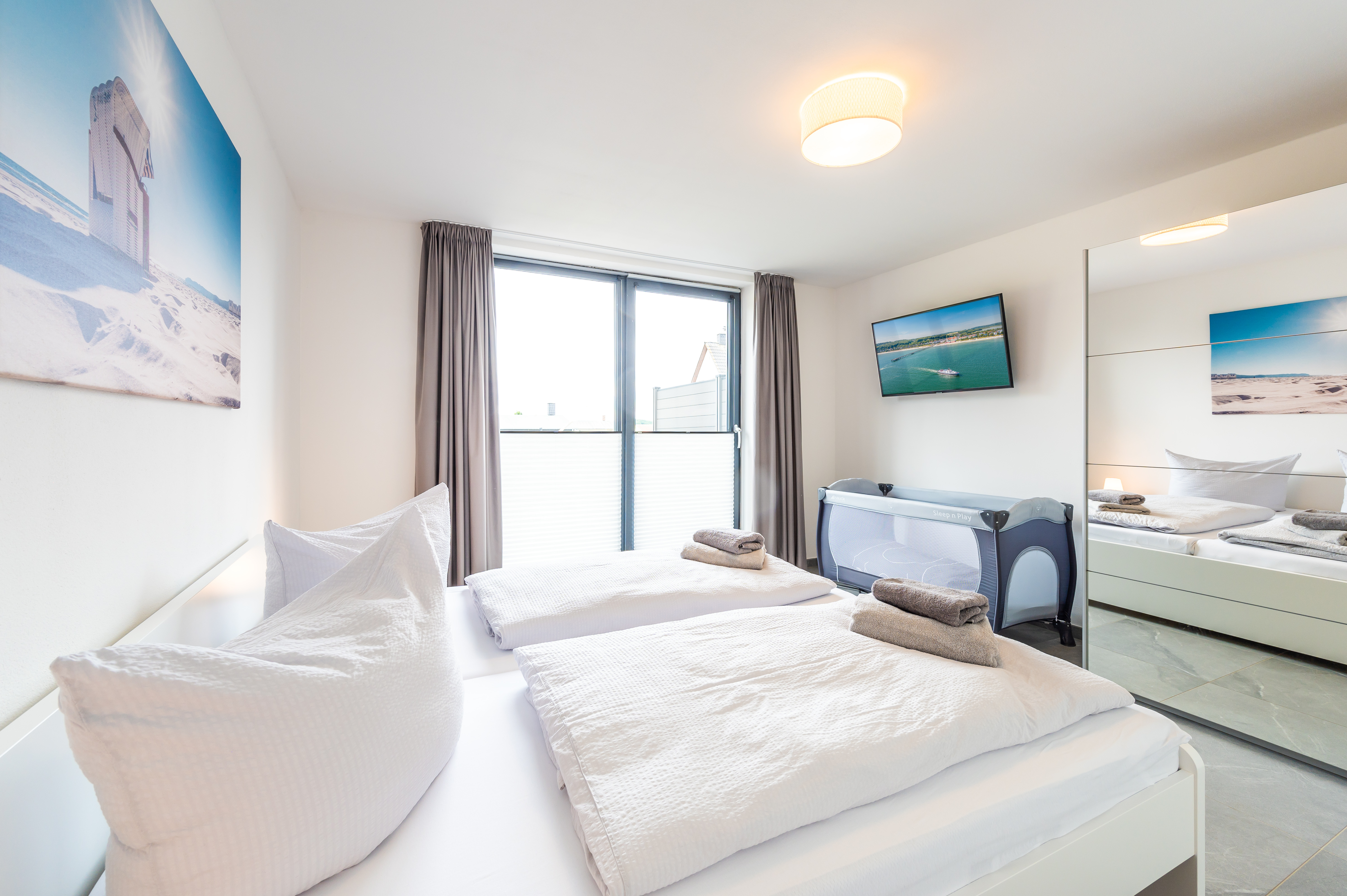 Die 3-Zimmer Ferienwohnung befindet sich in einem modernen Einfamilienhaus im Ostseebad Binz und bietet Platz für vier Personen und ein Kleinkind (Kinderbett).